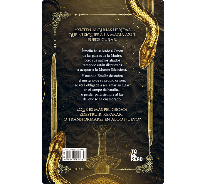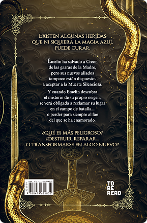 Emelin ha escapado de la Corte Carmesà y ha salvado a Creon de las garras de la Madre. Pero sus nuevos aliados presentan sus propios peligros. Rodeada de viejas rencillas y rencores enconados, Emelin necesitará todo su ingenio para mantener a la Muerte Silenciosa a salvo de sus... ¿amigos? Y cuando sus esfuerzos por ayudar a Creon le revelen atisbos de sus orÃgenes misteriosos, se verá obligada a reclamar su lugar en el campo de batalla... o perder para siempre al Fae del que se ha enamorado. Existen algunas heridas que ni siquiera la magia azul puede curar...